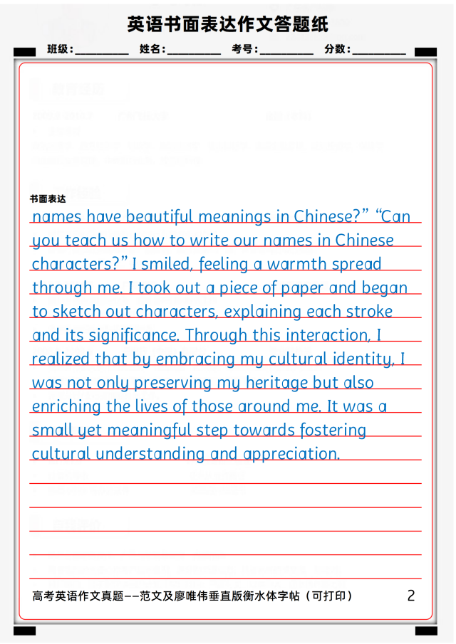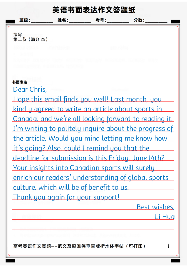 2025高考英语新课标全国二卷,书面表达,范文解析附手写字帖